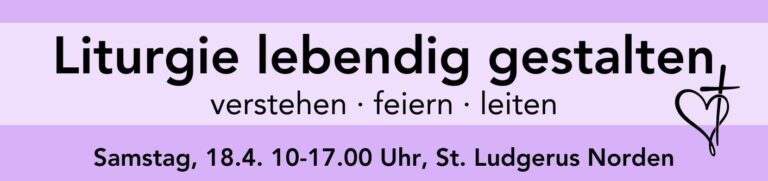 verstehen – feiern – leiten Samstag, 18.4. 10-17.00 Uhr, St. Ludgerus Norden Was passiert eigentlich, wenn wir Liturgie feiern?Warum berühren Rituale – manchmal tief, manchmal kaum?Und wie kann ich selbst Worte, Zeichen und Gebete so gestalten,dass sie Menschen wirklich ansprechen?Willkommen…