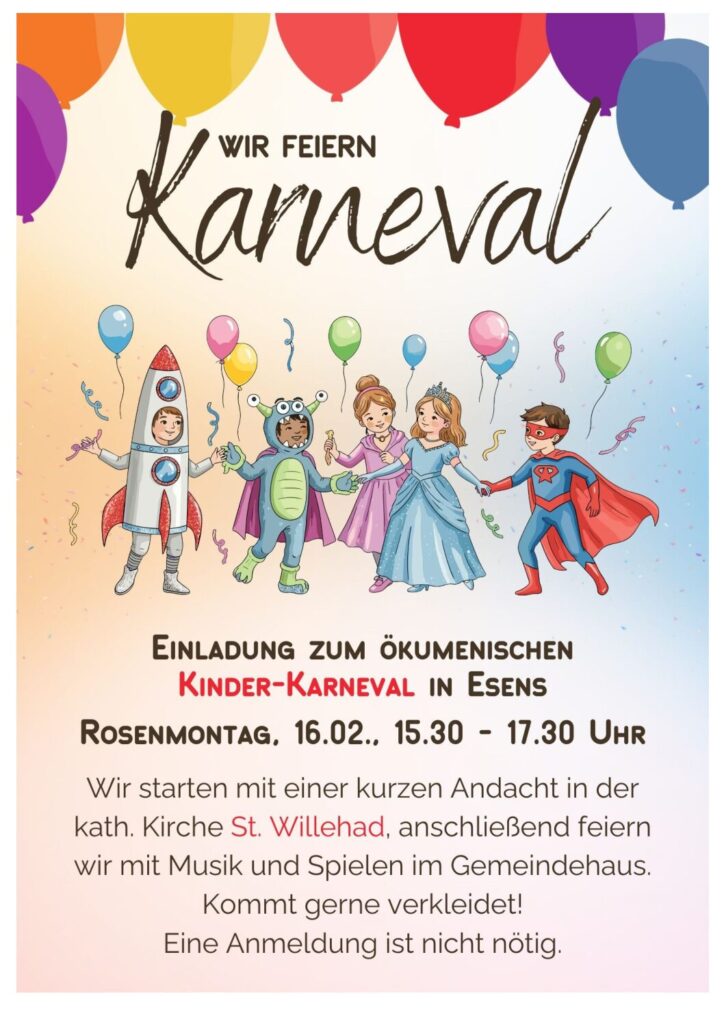 Ökumenischer Kinder-Karneval in Esens, Rosenmontag, 16.02.2026
