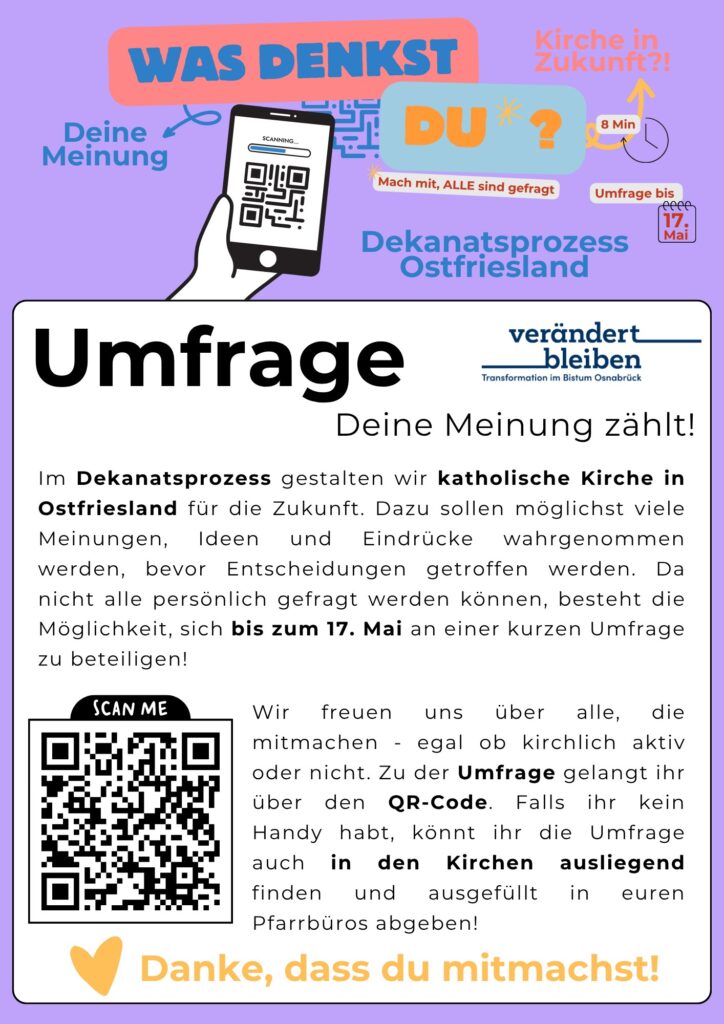 - Wie könnte und sollte unsere katholische Kirche im Dekanat Ostfriesland in Zukunft aussehen?! Macht mit bei der Umfrage! Eure und jede Meinung zählt!